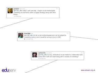 The document provides strategic insights into digital marketing and social media strategies tailored for organizations. It emphasizes the importance of shared vision, measurable success, audience engagement, and iterative approaches to content creation and analysis. Key recommendations include utilizing Google Analytics, developing effective social media strategies, and understanding search behavior to maximize audience engagement and resources.