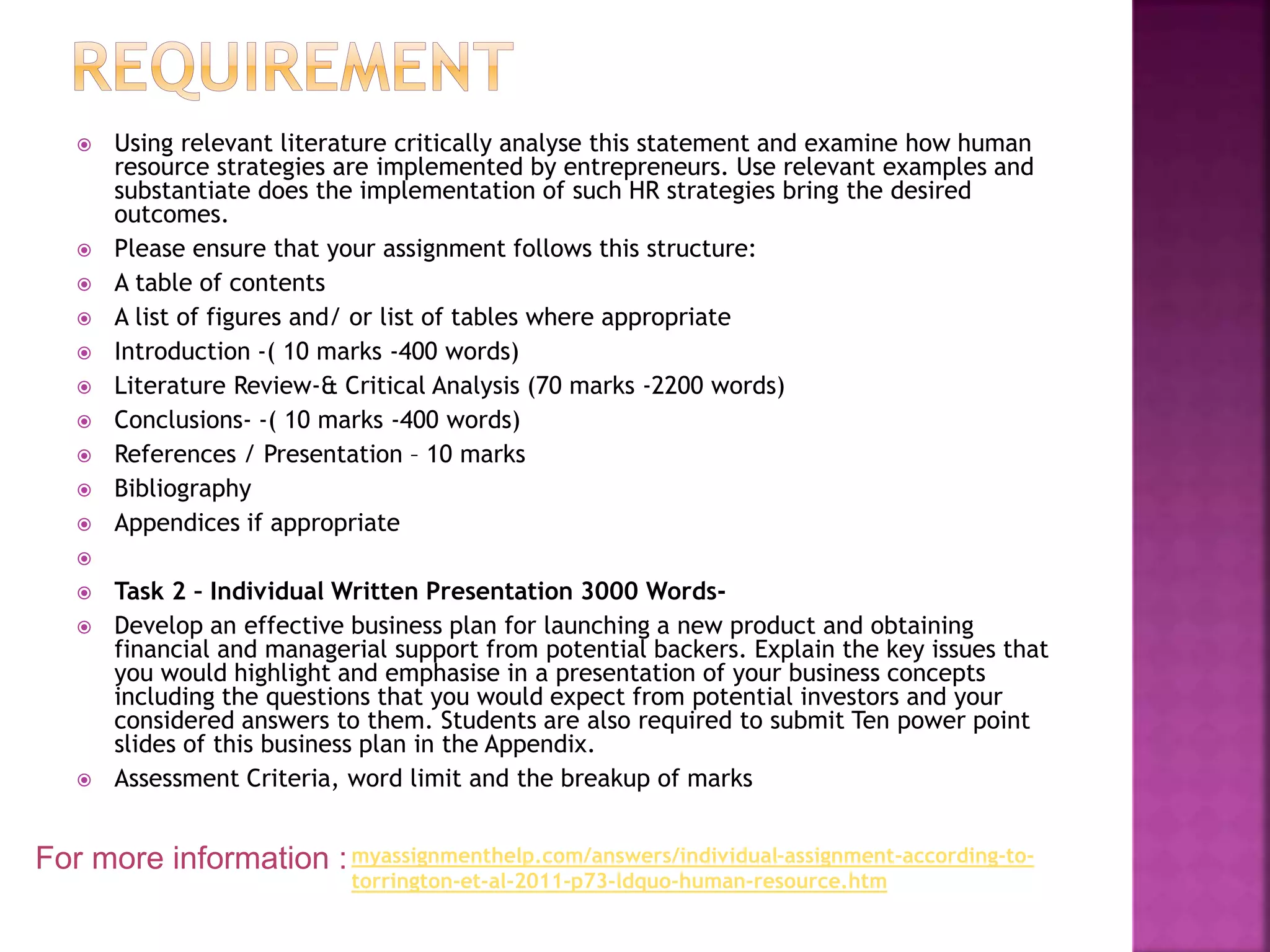 This document outlines the requirements for an assignment analyzing human resource strategies implemented by entrepreneurs, including structure, content guidelines, and assessment criteria. It emphasizes the importance of human resource management in achieving employee motivation and productivity, while discussing the need for flexibility, culture management, and effective change management. Additionally, it highlights the role of HR strategists in integrating business performance and technology within various organizational structures.