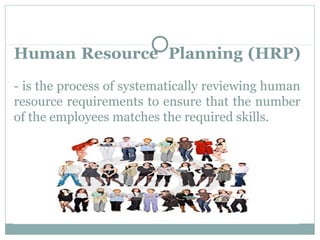 This document discusses strategic human resource planning and management. It covers determining workforce needs based on organizational goals, forecasting staffing requirements, and ensuring adequate availability of employees with the right skills. The key aspects of human resource planning include systematic forecasting of needs, performance management, career management, and management development. An effective human resource information system is also important for obtaining timely workforce data to support decision-making.