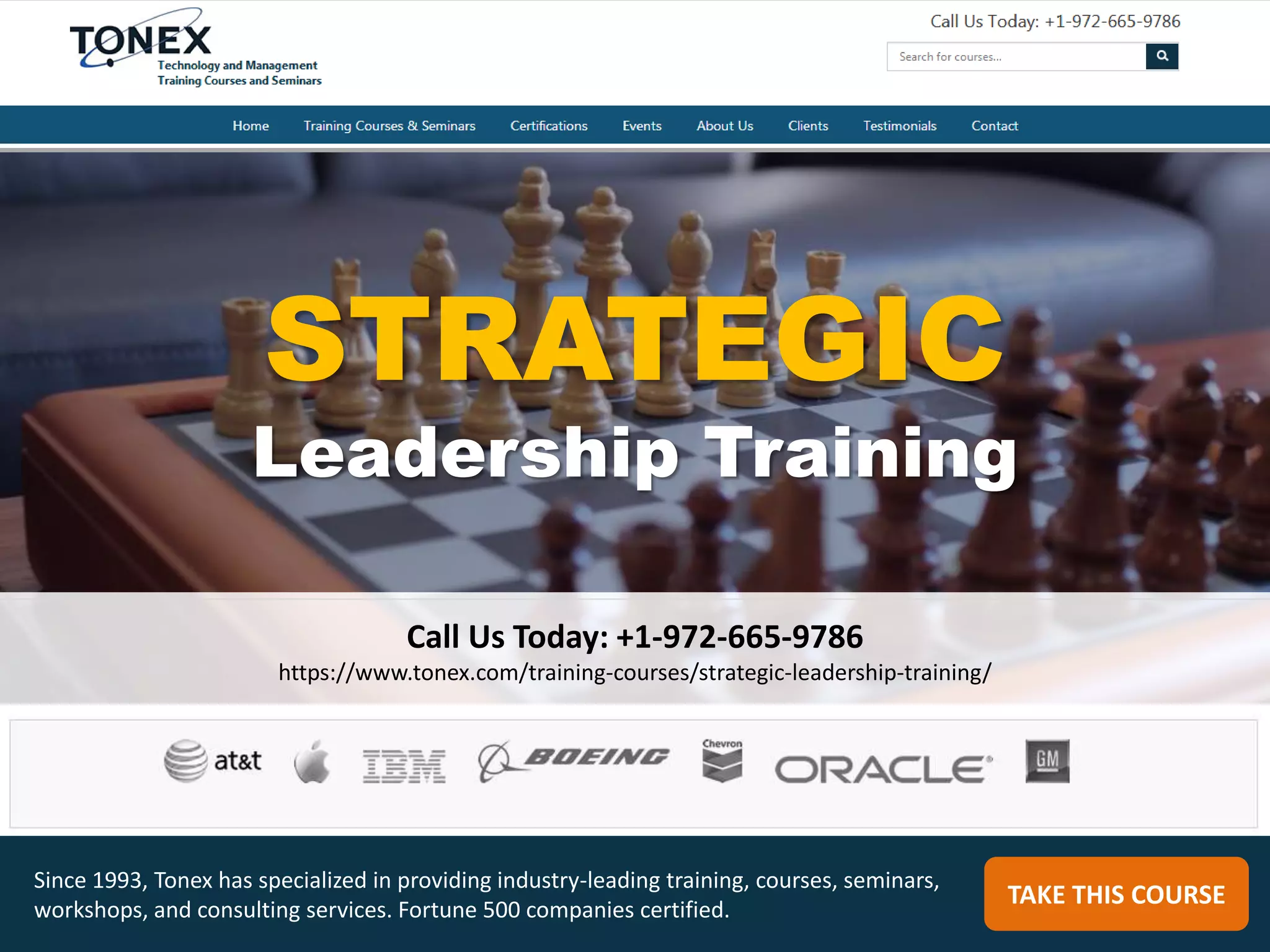 Tonex offers a two-day Strategic Leadership Training course designed for senior managers and executives, focusing on enhancing leadership skills and strategic thinking. The course covers essential leadership qualities, emotional intelligence, and how to tackle organizational challenges, with a high student satisfaction rate of 98%. Priced at $1,699, the program aims to develop competencies necessary for effective leadership and strategic decision-making in various sectors.