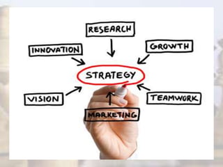 The document discusses the concept of strategy, its origins and evolution. It provides definitions of strategy from various sources and outlines some key points: