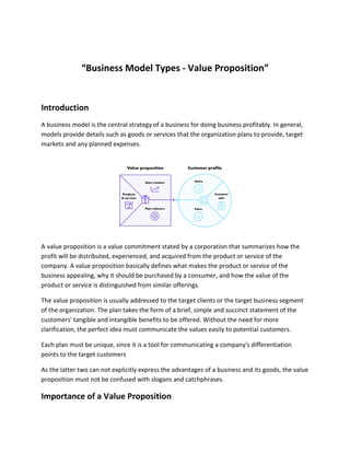 The document discusses the importance of a value proposition as a central strategy for businesses, summarizing how a company's offerings appeal to customers and differentiating it from competitors. It emphasizes the significance of a clear and concise value proposition in driving sales and guiding marketing strategies, as well as outlining methods to craft effective propositions. Additionally, several examples of successful companies are provided to illustrate how strong value propositions contribute to their market presence and customer engagement.