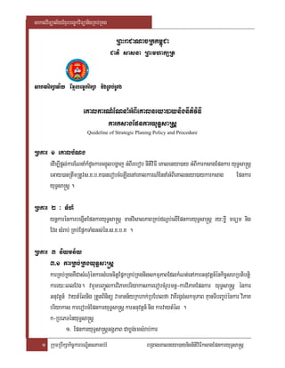 This document provides guidelines for strategic planning policy and procedures at an organization. It outlines 4 sections for strategic planning: