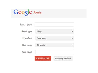 This document discusses strategic social media monitoring and listening for businesses. It provides tips on using tools like Google Alerts, social media alerts, and analytics platforms to track competitors, customers and discussions online. Metrics like site traffic, engagement and comments are important to measure. The highest ROI social networks are identified as Facebook, ratings/reviews, Twitter, LinkedIn and participating in industry forums. Developing search and monitoring skills is key to inform business objectives through social listening.