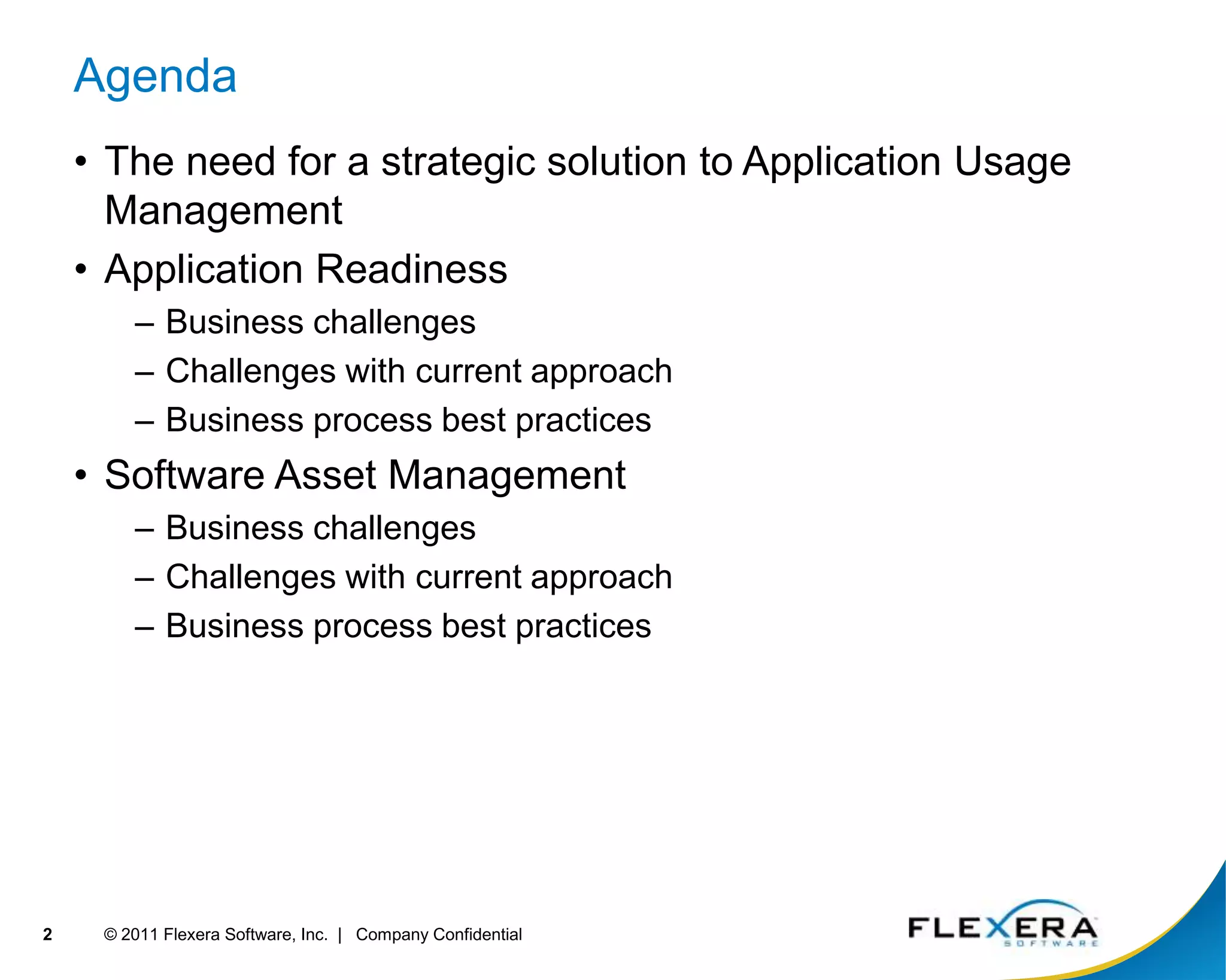The document discusses the importance of strategic application usage management amid increasing software complexity and business demands. It highlights the challenges organizations face in managing applications, including manual processes, lack of standardization, and difficulties in ensuring compliance and optimal license allocation. The need for a continuous, best-practice approach to software asset management is emphasized to improve deployment, compliance, and cost-effectiveness.