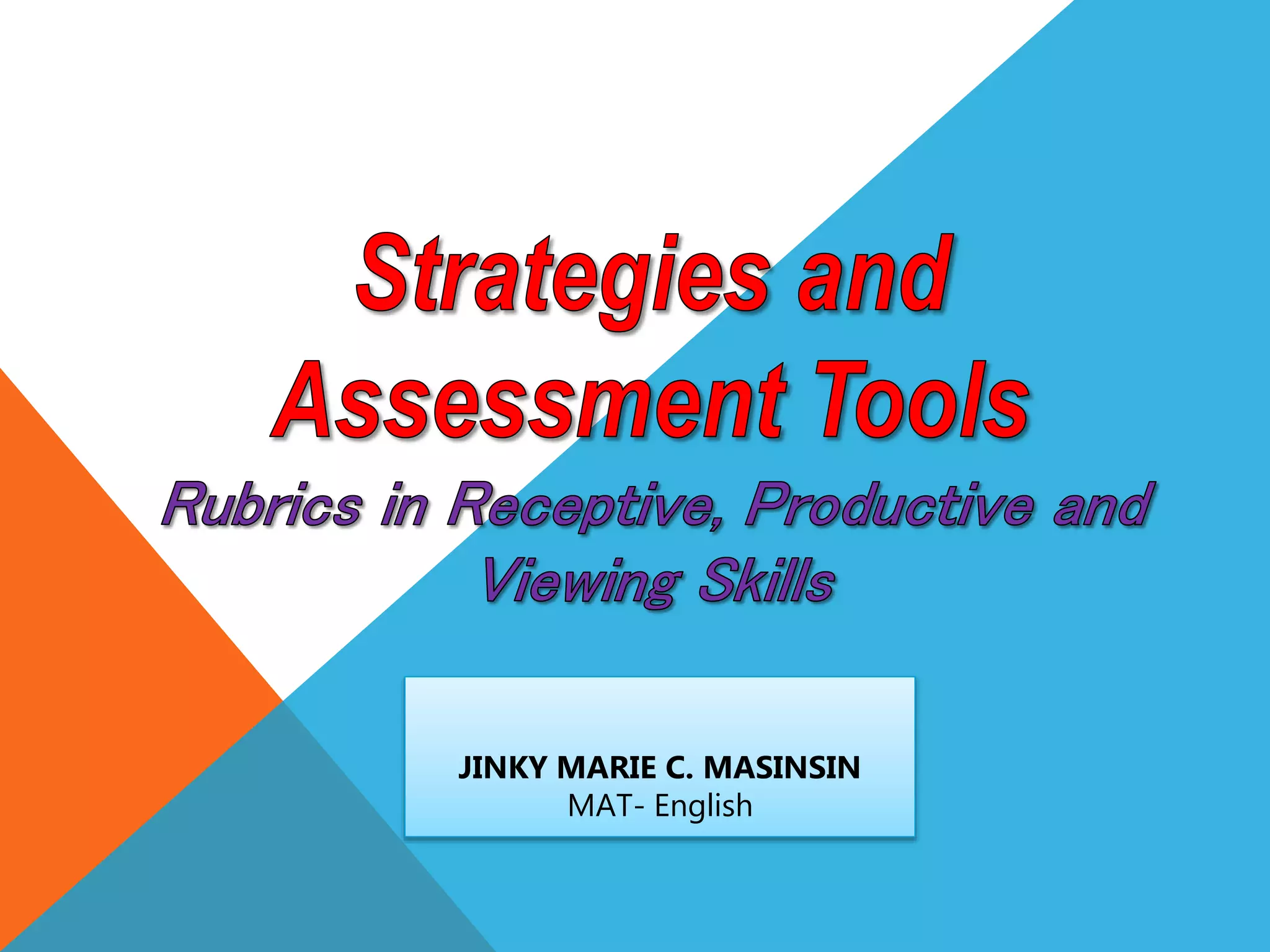 The document contains rubrics for assessing various skills in English including listening, oral reading, speaking, poetry writing, and restating viewed texts/visuals. Each rubric includes 4-5 levels for rating performance from beginning to advanced levels. For example, the listening rubric has levels for inferring speakers' moods from tone, inferring implicit messages, and altering inferences as more information is provided.