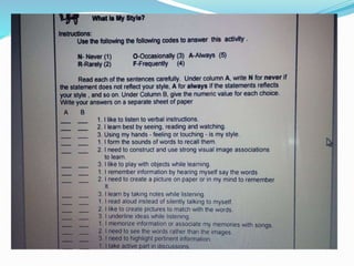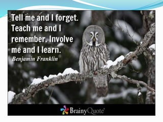 1. Constructivist learning strategies like discovery learning and inquiry-based learning which emphasize hands-on learning and allowing students to construct their own understanding.
