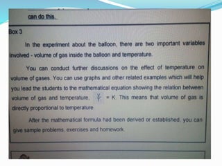 The document discusses various teaching approaches and strategies for teaching science, including:
