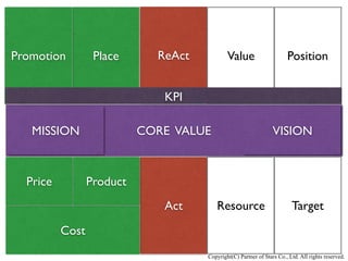 Resource CORE VALUE TargetAct PositionValueReAct Cost PlacePromotion VISIONMISSION KPI Price Product Copyright(C)