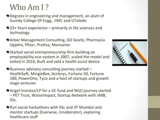 The document discusses perspectives on strategy from Anand Kumar Padmanaban. It provides examples of strategy consulting projects he has worked on, including helping a healthcare services company increase its valuation and facilitate its sale, developing an employability ecosystem model for an education company that led to its acquisition, and turning around a struggling business. It also outlines some key lessons learned, such as identifying the most important issues to focus on resolving and tools that can be used in strategic planning like the SWOT framework.