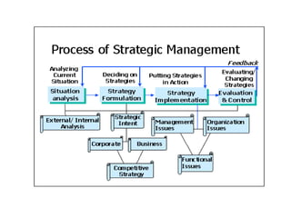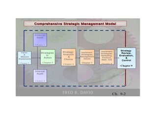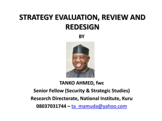 The document discusses the circular nature of the strategic management process, focusing on strategy evaluation, review, and redesign as critical components that enable organizations to adapt and thrive. It emphasizes the need for continuous evaluation and adjustment of strategies in response to environmental changes and complexities. A simulation exercise is included to help participants apply the concepts of strategy evaluation and redesign in a practical context.