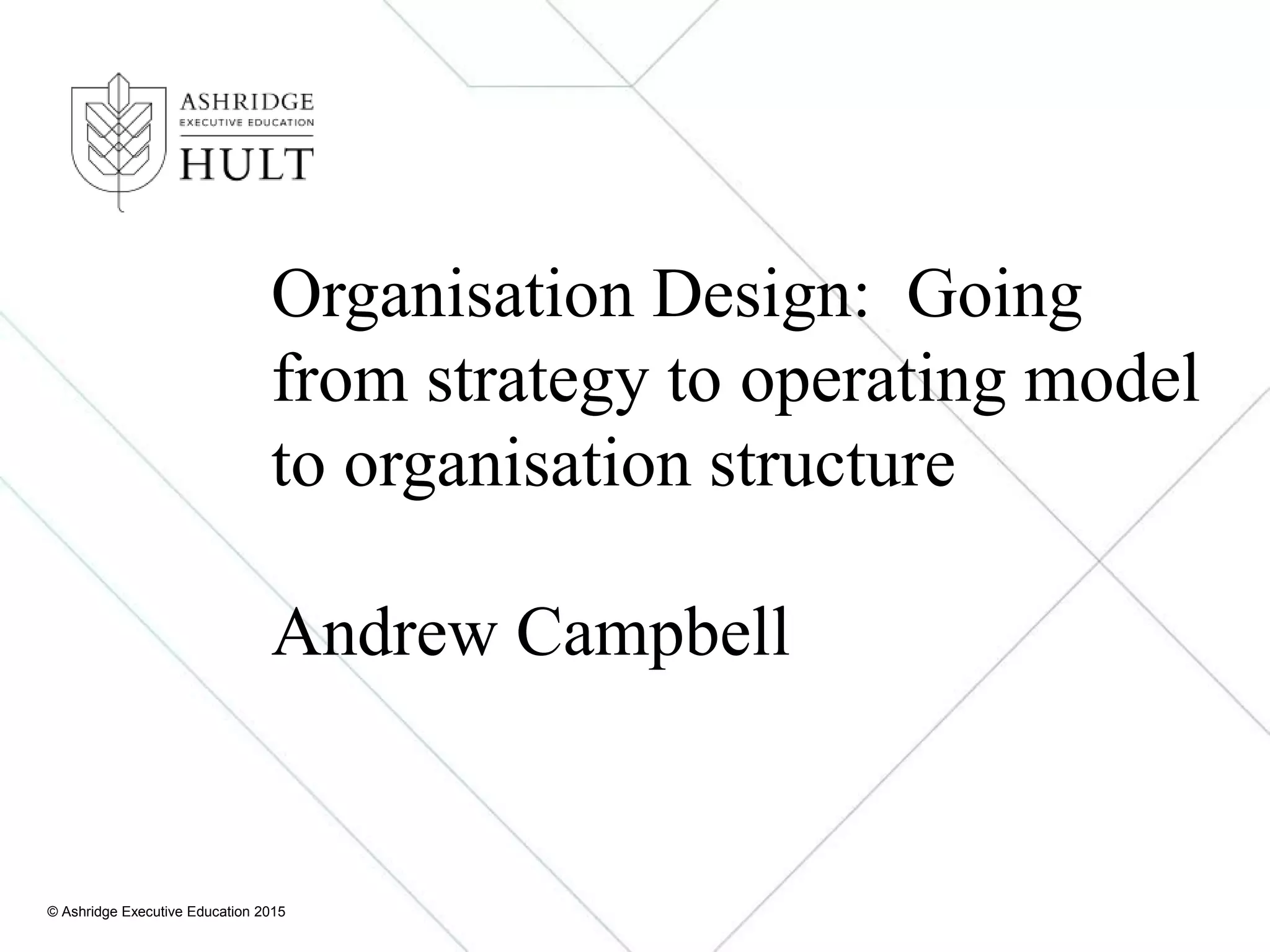 The document discusses organization design, detailing the transition from strategy to operating model and structure. It presents multiple tests for effective organization design and outlines the business model canvas, which includes elements such as value propositions, cost structure, and revenue streams. Additionally, it emphasizes the importance of value chains in delivering propositions and highlights different types of organizational work.