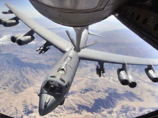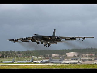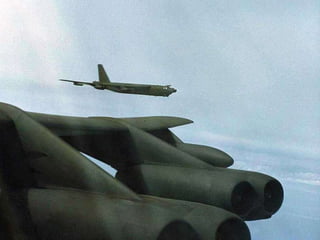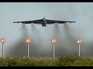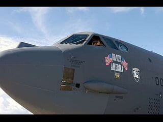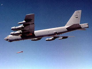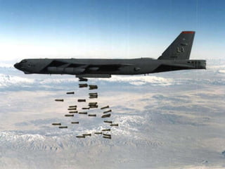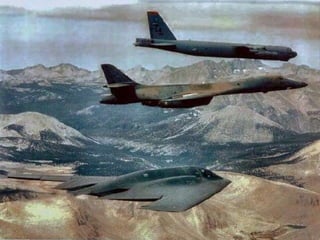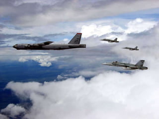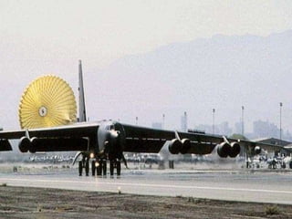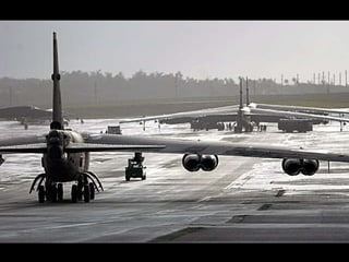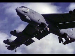The document discusses the history and capabilities of the B-52 Stratofortress bomber. It lists several bomber models from the B-17 to the B-2 that have responded to global conflicts. It specifically honors the 55th anniversary of the B-52 which has served as the "middle linebacker" of defense and the "big stick" of freedom for two generations of Americans through its versatility, range, reliability and longevity.