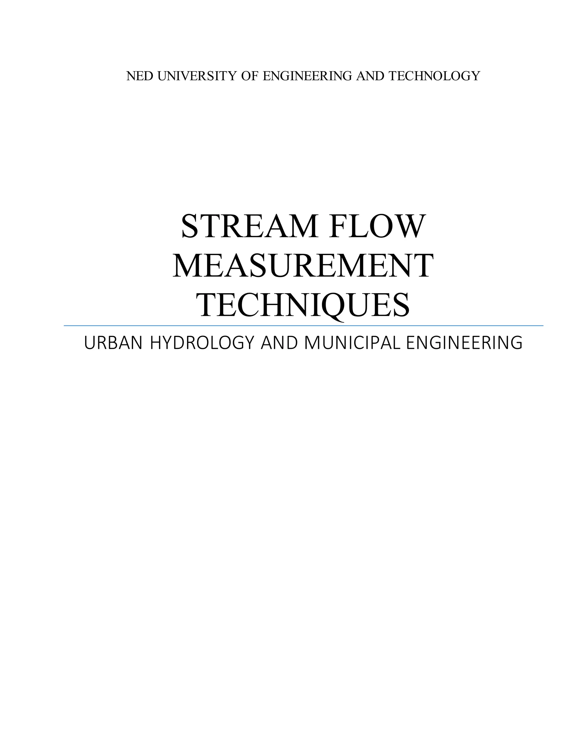 This document discusses various techniques for measuring stream flow, which is the volume of water moving through a designated point over time. It describes common methods like the velocity-area method, using a weir, and the bucket method. It also outlines different types of meters that can directly measure flow properties like velocity, including pygmy meters, vortex meters, and current meters. Accurately measuring stream flow is important for applications like flood prediction, assessing water and sediment levels over time, and monitoring long-term climate changes. A combination of techniques may be needed to account for variability in flow across seasons.