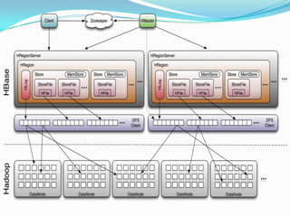 - Flume is used to ingest streaming data into HBase for storage and querying. HBase's column families allow storing different types of data with different time to live settings.
