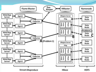 - The document discusses using Flume and HBase for real-time analytics of streaming big data with service level agreements (SLAs).