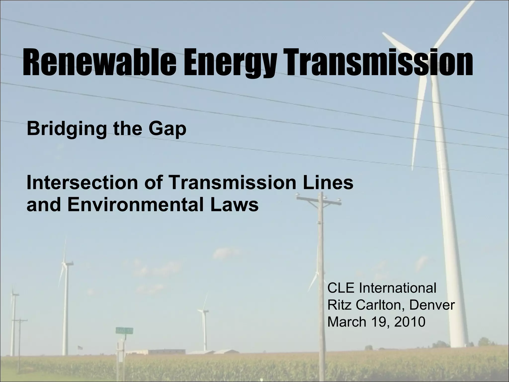 This document summarizes strategies for streamlining the permitting process for renewable energy transmission projects. It discusses the intersection of transmission line permitting with environmental laws at both the state and federal level. Tips are provided for expediting permitting, including early coordination with agencies, developing a complete application, public engagement, and analyzing adequate project alternatives. Completing pre-filing activities and getting all stakeholders involved early are emphasized as ways to facilitate review and receive feedback to help projects move through the process more quickly.