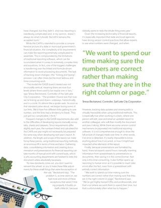 This document discusses challenges with traditional manual financial reporting processes used by many state and local agencies. Relying on spreadsheets and in-house software, agencies spend countless hours developing annual reports which are prone to human errors. The document advocates automating the reporting process using a web-based platform to eliminate inefficiencies, improve accuracy, and allow real-time collaboration. This would allow agencies to focus on analysis rather than manual data entry and formatting.