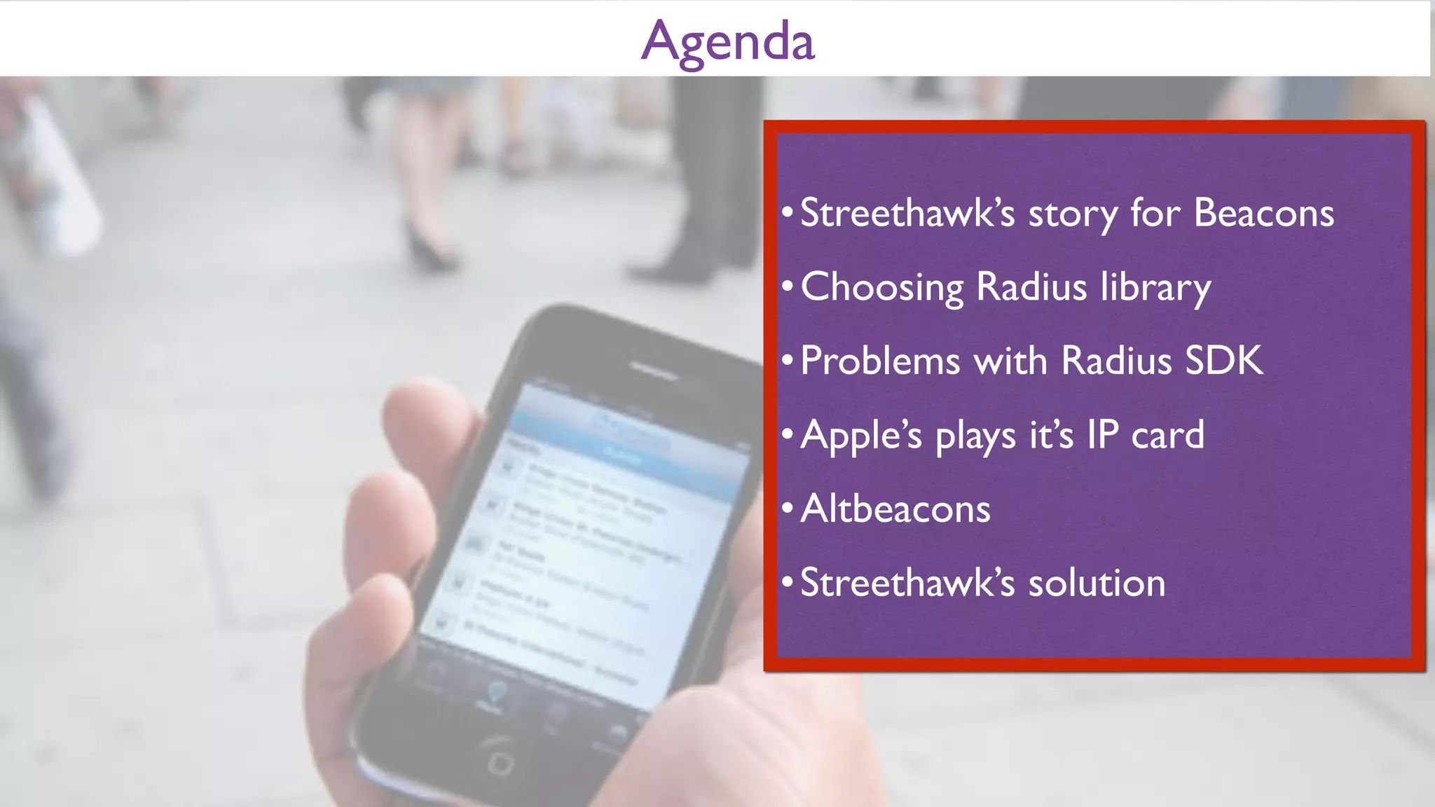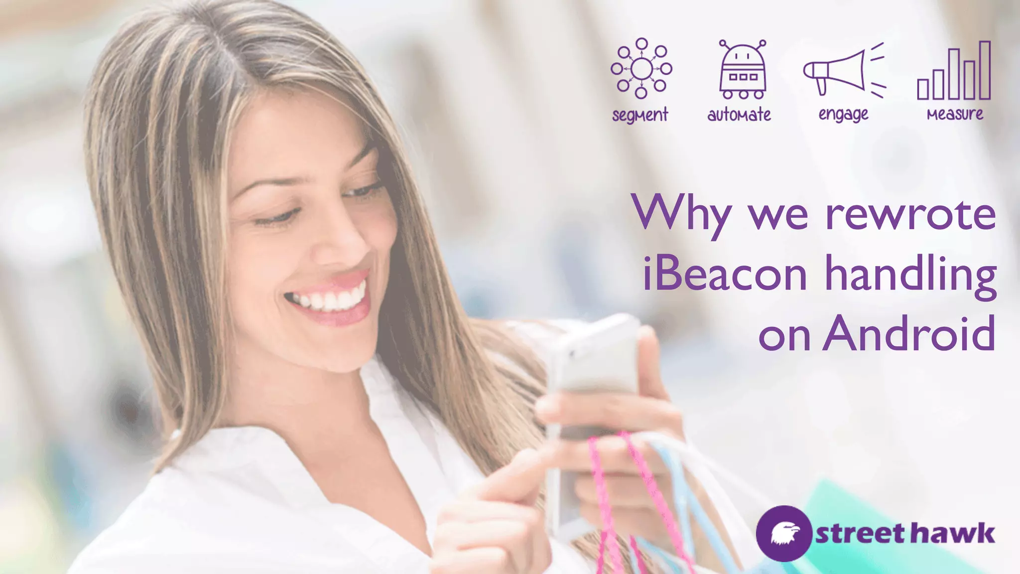 The document discusses the challenges and solutions related to implementing iBeacon technology on Android, which differs from iOS due to Bluetooth-level complexities. It highlights StreetHawk's development of its own beacon parser to address issues with existing libraries like Radius, particularly around stability and compatibility. The presentation concludes with concerns about future API support from Google and the potential for retailers to deploy separate beacons for iOS and Android devices.