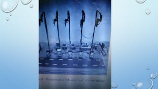 This document describes an automatic street lighting system that uses an LDR sensor, infrared sensors, and a microcontroller to intelligently control street lights. The system turns lights on when it detects vehicles using infrared sensors and turns them off during the day based on light levels measured by the LDR sensor. This allows energy to be saved by only powering lights when needed. The system aims to reduce energy costs, greenhouse gas emissions, and maintenance costs compared to a conventional street lighting system.