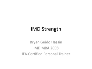 Strength training is most effective when it stimulates muscles with maximum intensity through a full range of motion without cheating or using momentum. This is achieved through high intensity repetitions that take several seconds and holding the contraction. Adequate rest between workouts, around a week, is also important to allow muscles to fully recover and rebuild stronger. This maximum stimulation and rest approach to strength training is faster, safer and more effective than conventional methods, and can stimulate the entire body in just 30-60 minutes per week.