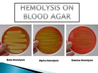 This document discusses the classification and identification of streptococci bacteria. It describes their morphology, culture characteristics, biochemical reactions, Lancefield grouping, and clinical significance. Key streptococci groups discussed include Group A (Streptococcus pyogenes), Group B (Streptococcus agalactiae), Streptococcus pneumoniae, and Enterococcus species. Identification is based on colony appearance on blood agar, Gram staining, and biochemical tests like catalase and bile solubility.