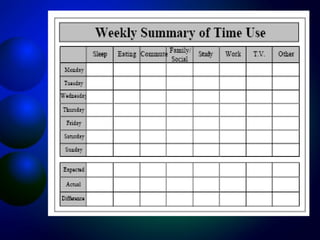 - Effective time management includes planning, setting priorities and goals, avoiding procrastination, and using tools like planners and schedules. It is important to regularly evaluate time management habits.