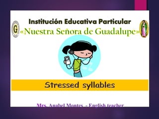 This document is an English lesson on word stress and syllables. It discusses how to find the stressed syllable in words using a dictionary. It notes that content words like nouns, verbs, adjectives and adverbs are usually stressed, while function words like articles, pronouns, prepositions and conjunctions are usually unstressed. Examples are provided to illustrate stressed and unstressed words. Exercises are included for students to identify stressed syllables and underline them in words.