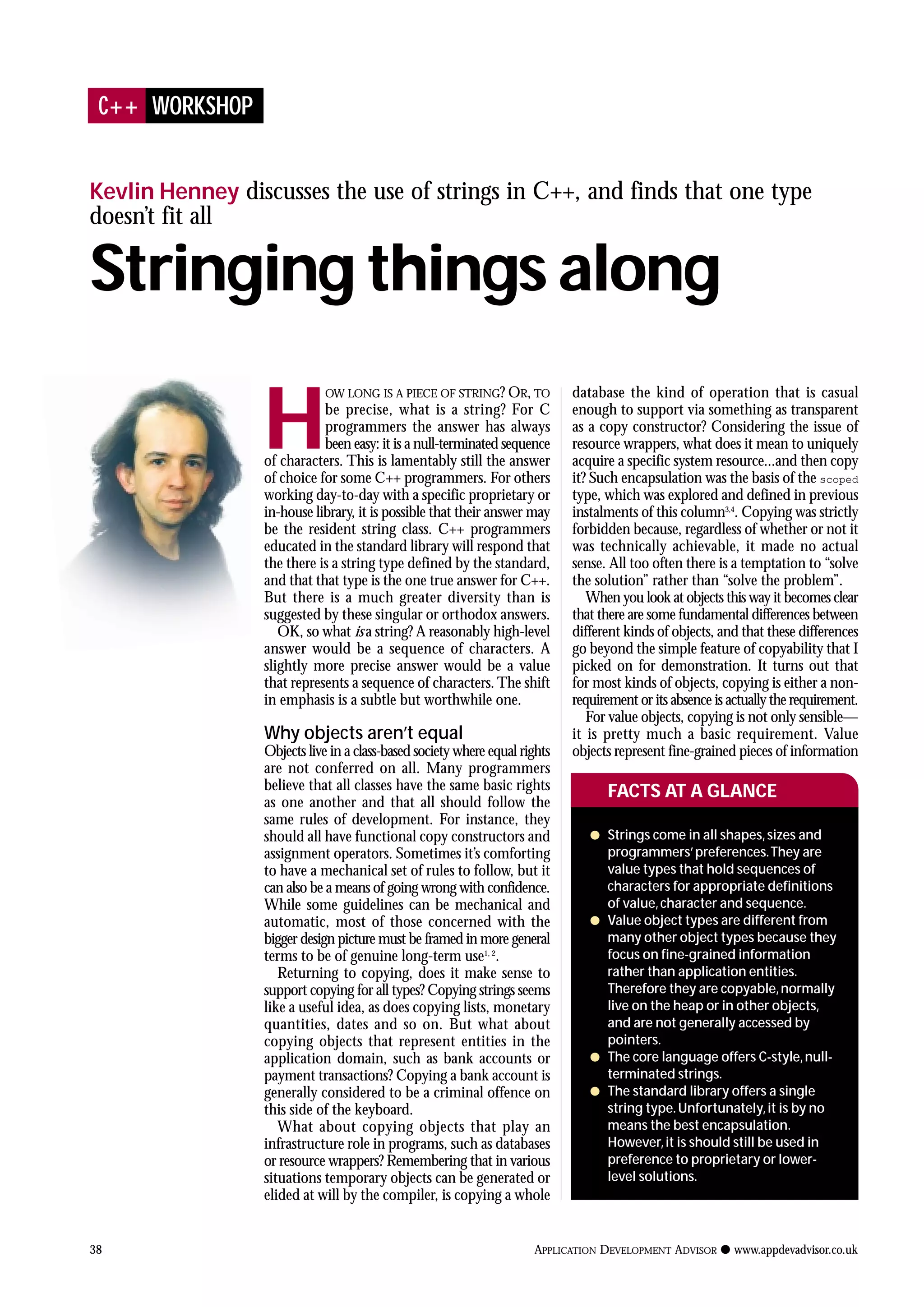 q The core language offers C-style, null-terminated strings. The standard library offers a single string type. Unfortunately, it is by no means the best encapsulation. However, it is should still be used in preference to proprietary or lower-level solutions.
