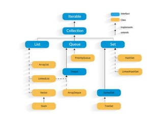 This document provides an overview of Java arrays, strings, and collections. It discusses single and multi-dimensional arrays, parsing command line arguments, and the advantages and disadvantages of arrays. It also covers the ArrayList class, iterating with iterators and list iterators, and common collection methods. Finally, it summarizes working with dates, the String class, and StringBuilder.
