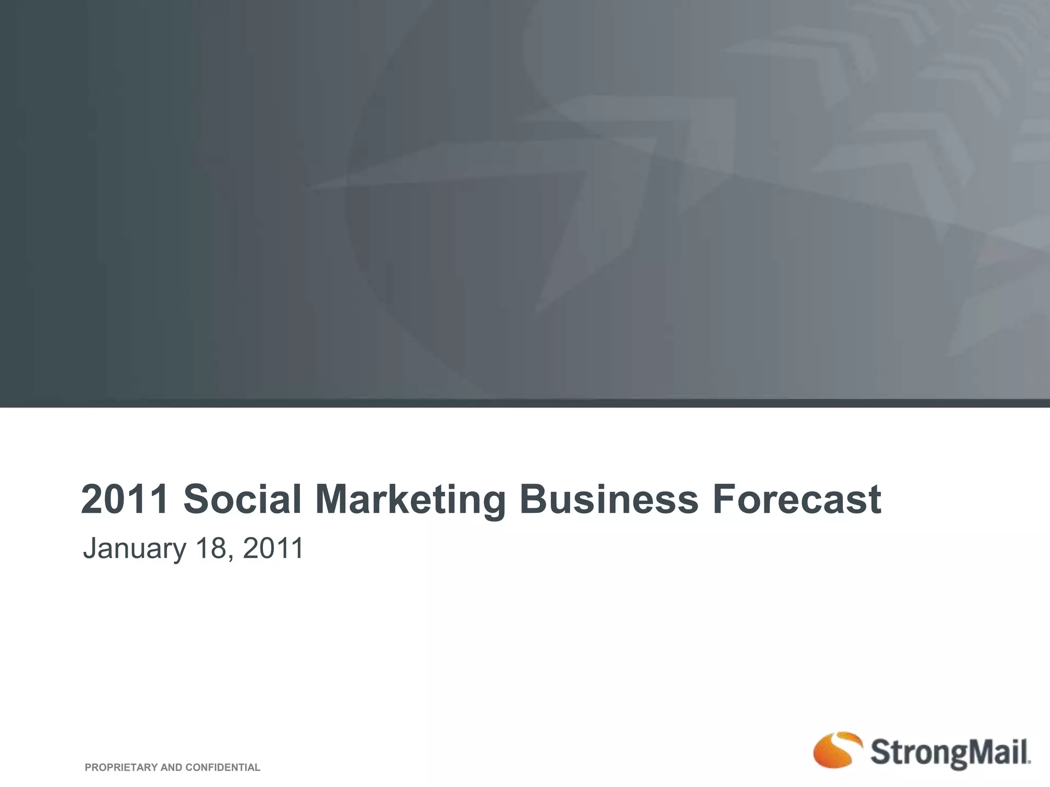 The 2011 social marketing business forecast emphasizes the integration of social media within corporate structures, focusing on ROI measurement and the development of scalable social media programs. Companies are encouraged to hire the right talent and invest in systems like social CRM and social media management systems to enhance their strategies. The document forecasts significant budgeting changes and a shift towards more sophisticated engagement and measurement practices in social business.
