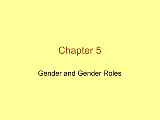 Gender and gender roles can be complex topics with biological, social, and cultural components. Biologically, sex is determined by genetic or anatomical characteristics, while gender refers to social and cultural roles associated with being male or female. Gender identity develops from a combination of biological and environmental factors. Traditional Western views emphasized polar masculine and feminine traits and roles, but modern perspectives recognize more fluidity and diversity in gender expressions. Conditions like intersexuality or transgenderism also show that biological sex and gender identity do not always align.