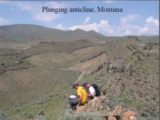 The document outlines key geological concepts related to folds, including elements such as anticline and syncline folds, as well as various related terms like faults, joints, and unconformities. It also emphasizes the significance of aerial photographs and rock cleavage in understanding these geological structures. The information is presented from the perspective of an engineering geology course by Prof. A.K. Baile.