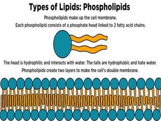 Structural lipids, including phospholipids and glycolipids, are essential components of biological membranes. Phospholipids, characterized by their hydrophilic heads and hydrophobic tails, are classified into glycerophospholipids and sphingophospholipids, with various specific types that serve crucial functions in cellular processes and membrane integrity. Glycolipids, which consist of fatty acids, alcohols, and monosaccharides, play important roles in cell communication and structural organization.