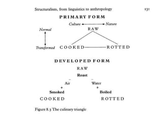 The document discusses structuralism as a paradigm shift in understanding language and culture, emphasizing the importance of differences in sign systems as theorized by Ferdinand de Saussure and Claude Lévi-Strauss. It explores the arbitrary nature of language relationships, the concept of myths as underlying structures that shape thought, and critiques of structuralism for being overly reductionist and ignoring individual agency. The text also covers various variants of structuralism across disciplines, highlighting its analytic relevance and influence.