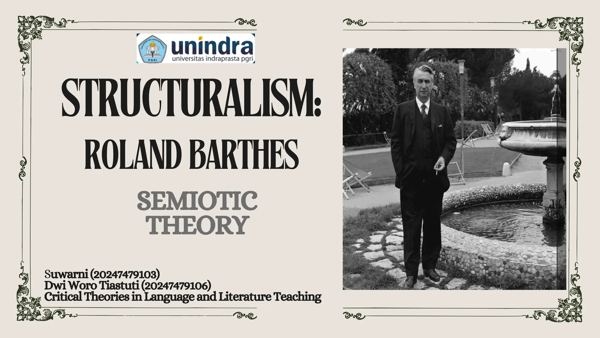 Here is a Structuralism : Roland Barthes brief explanation that matches your PowerPoint presentation on Semiotic Theory. It’s designed to be interactive, communicative, and easy to follow
