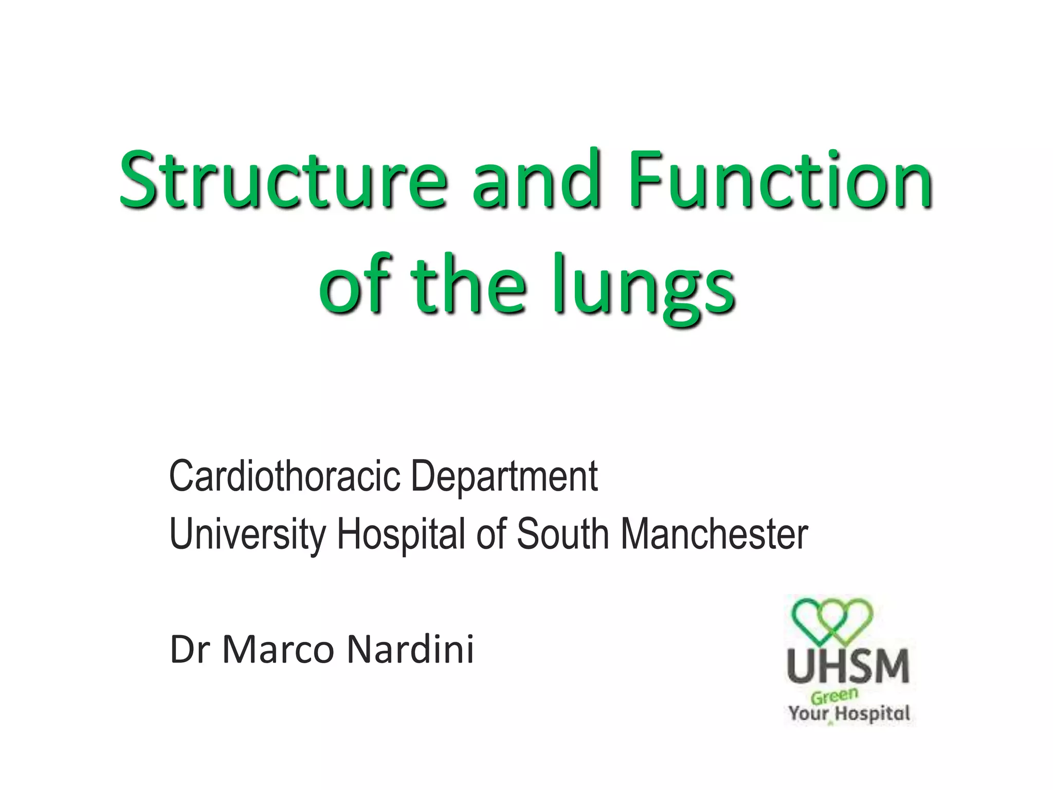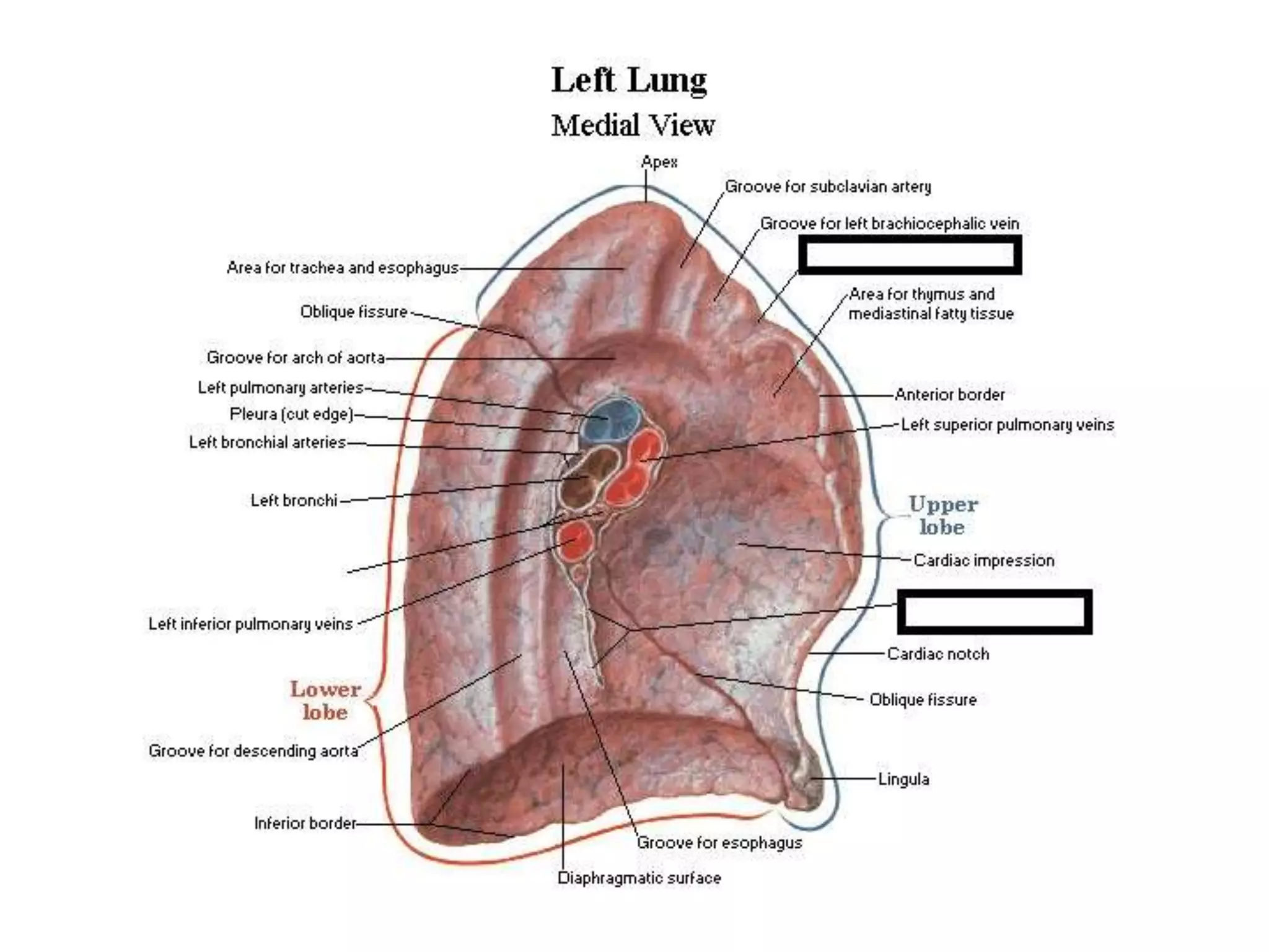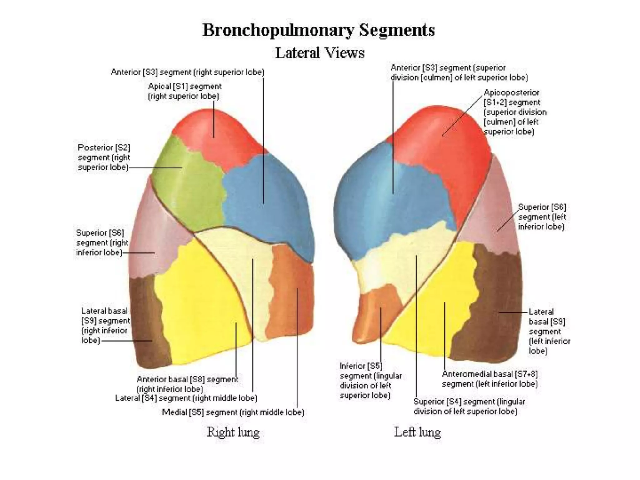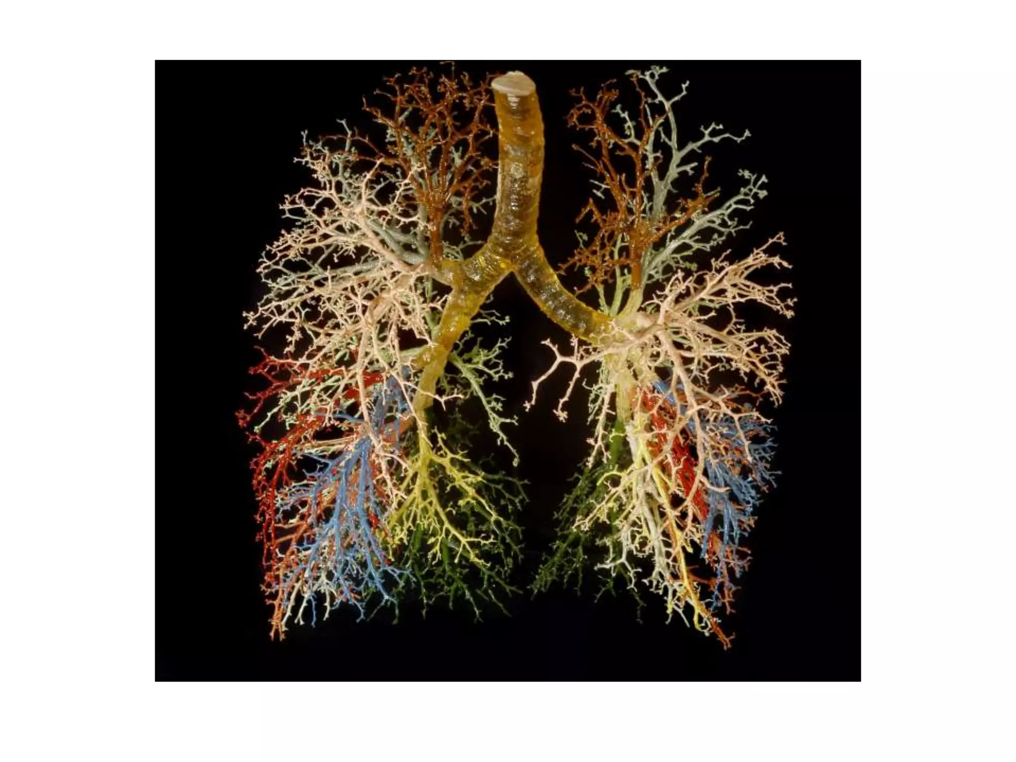 1. The document describes the structure and function of the lungs and trachea. It discusses key anatomical features like the trachea, bronchi, bronchopulmonary segments, blood supply, lymphatic drainage, and gas exchange in the lungs.