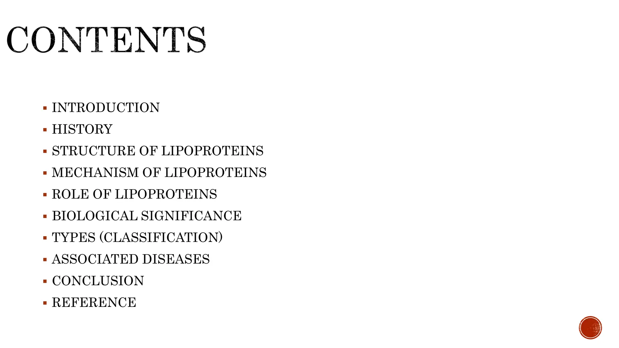 This document summarizes a seminar presentation on the structure and function of lipoproteins. It first provides background on lipoproteins, noting that they are lipid molecules conjugated with protein that transport lipids like cholesterol and triglycerides through the bloodstream. It then details the classification of major lipoproteins like chylomicrons, VLDL, LDL, and HDL; their roles in lipid transport; and associated diseases like atherosclerosis. The document concludes by emphasizing the importance of lipoproteins for overall health and lipid metabolism.