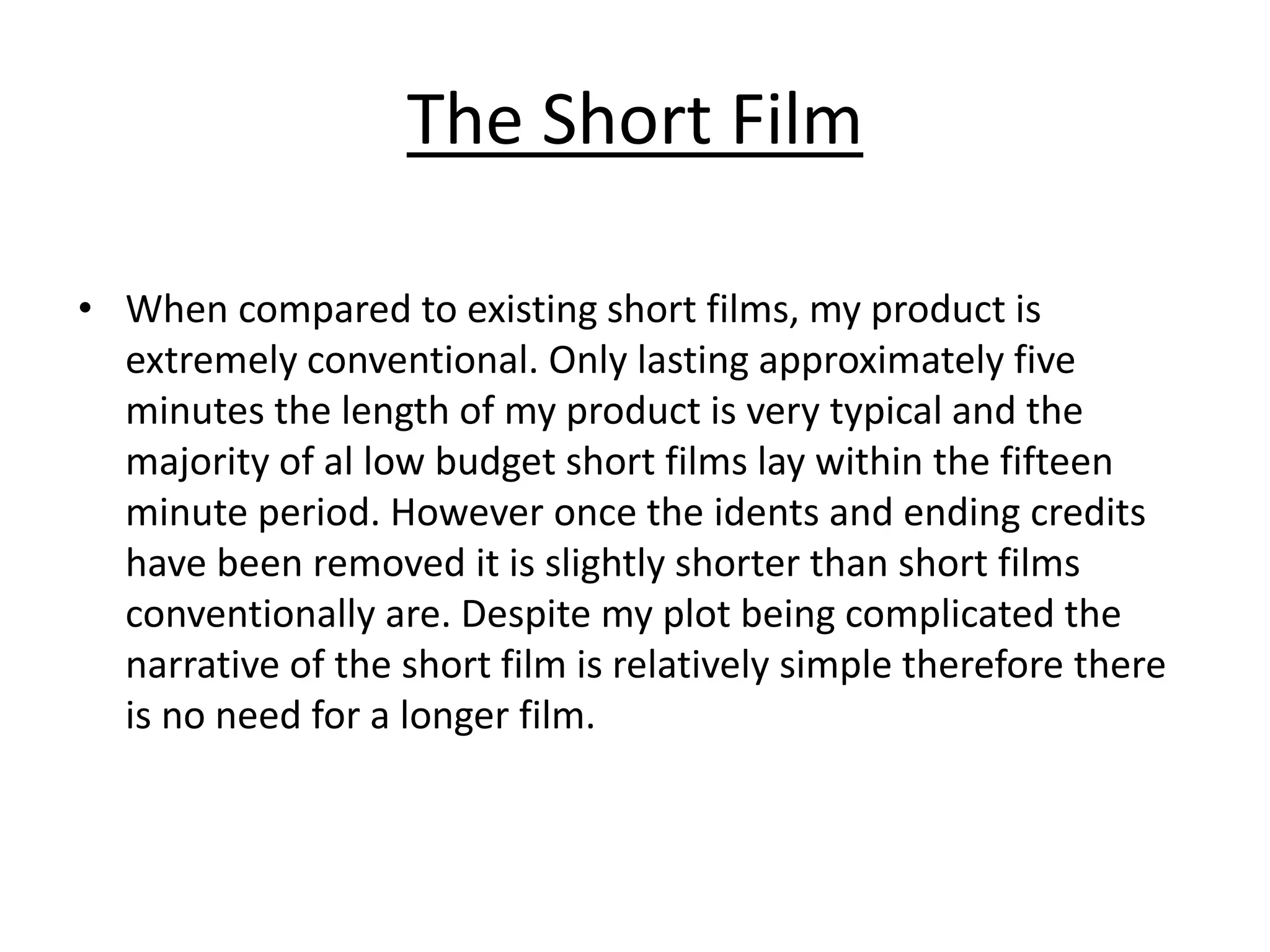 Adam Burton's short film is conventional in length, lasting approximately five minutes, which is typical for low-budget films. The narrative follows a linear structure based on the three-act model, ultimately leading to a climax without a conventional resolution. This results in a unique ending that contrasts with similar films, despite its familiar progression of events.