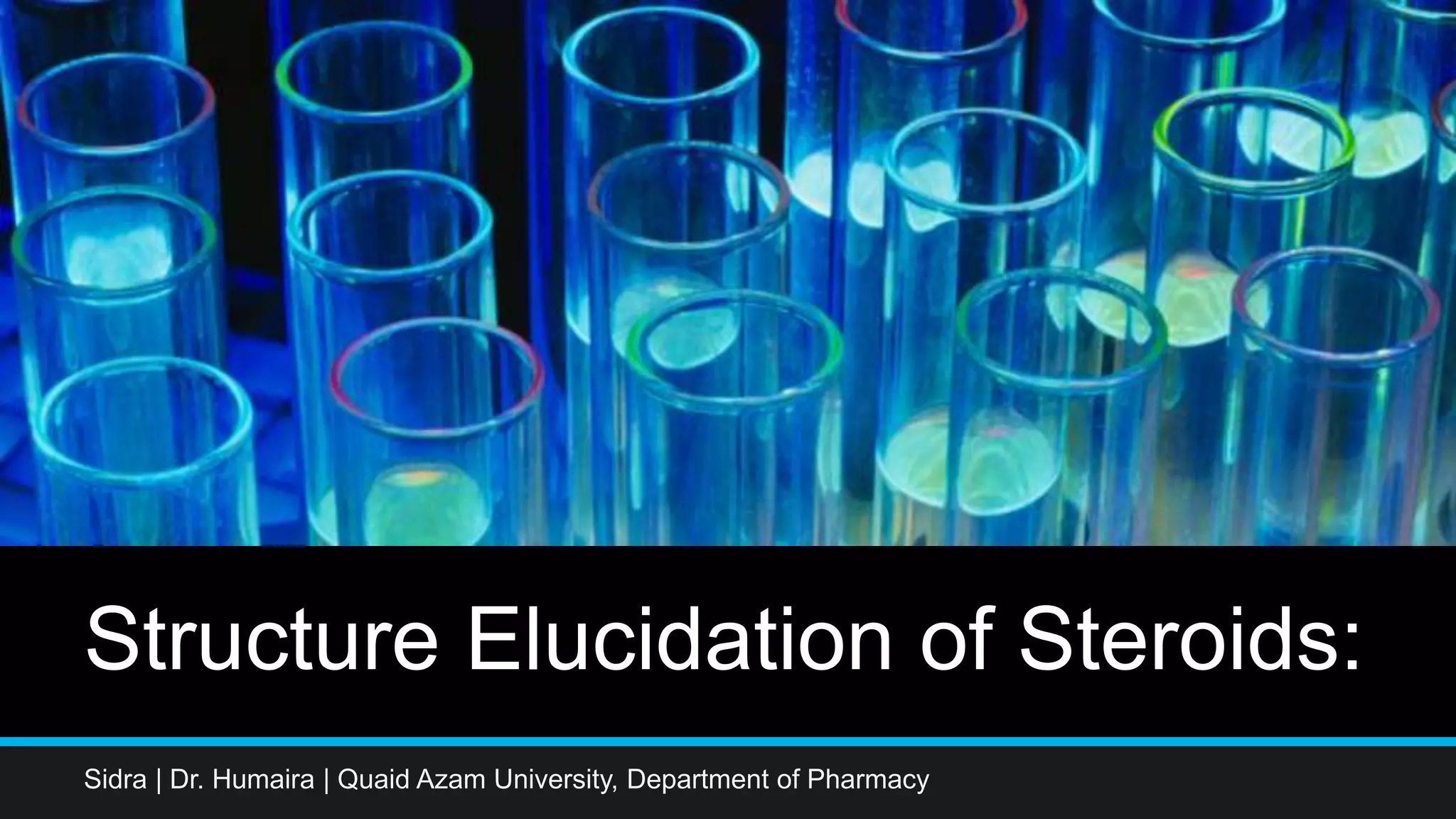 This document provides an extensive overview of steroids, including definitions, types, and various spectroscopic techniques used for their structure elucidation. It details methods such as ultraviolet absorption spectroscopy, infrared absorption spectroscopy, and nuclear magnetic resonance spectroscopy, explaining their principles and applications in studying steroid compounds. Additionally, it discusses the impact of solvent choice on spectral outcomes and introduces the Woodward-Fieser rules for calculating absorption maxima in conjugated molecules.