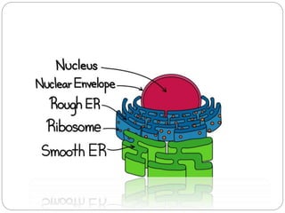 The cell is the basic unit of life. Animal cells lack cell walls and contain organelles like the nucleus, mitochondria, endoplasmic reticulum, Golgi bodies, lysosomes, and ribosomes surrounded by a plasma membrane. The nucleus contains DNA and controls cell activities. Mitochondria generate energy through cellular respiration. The endoplasmic reticulum and Golgi bodies process and transport proteins. Ribosomes synthesize proteins using mRNA. Together, these organelles allow animal cells to carry out specialized functions and maintain homeostasis.
