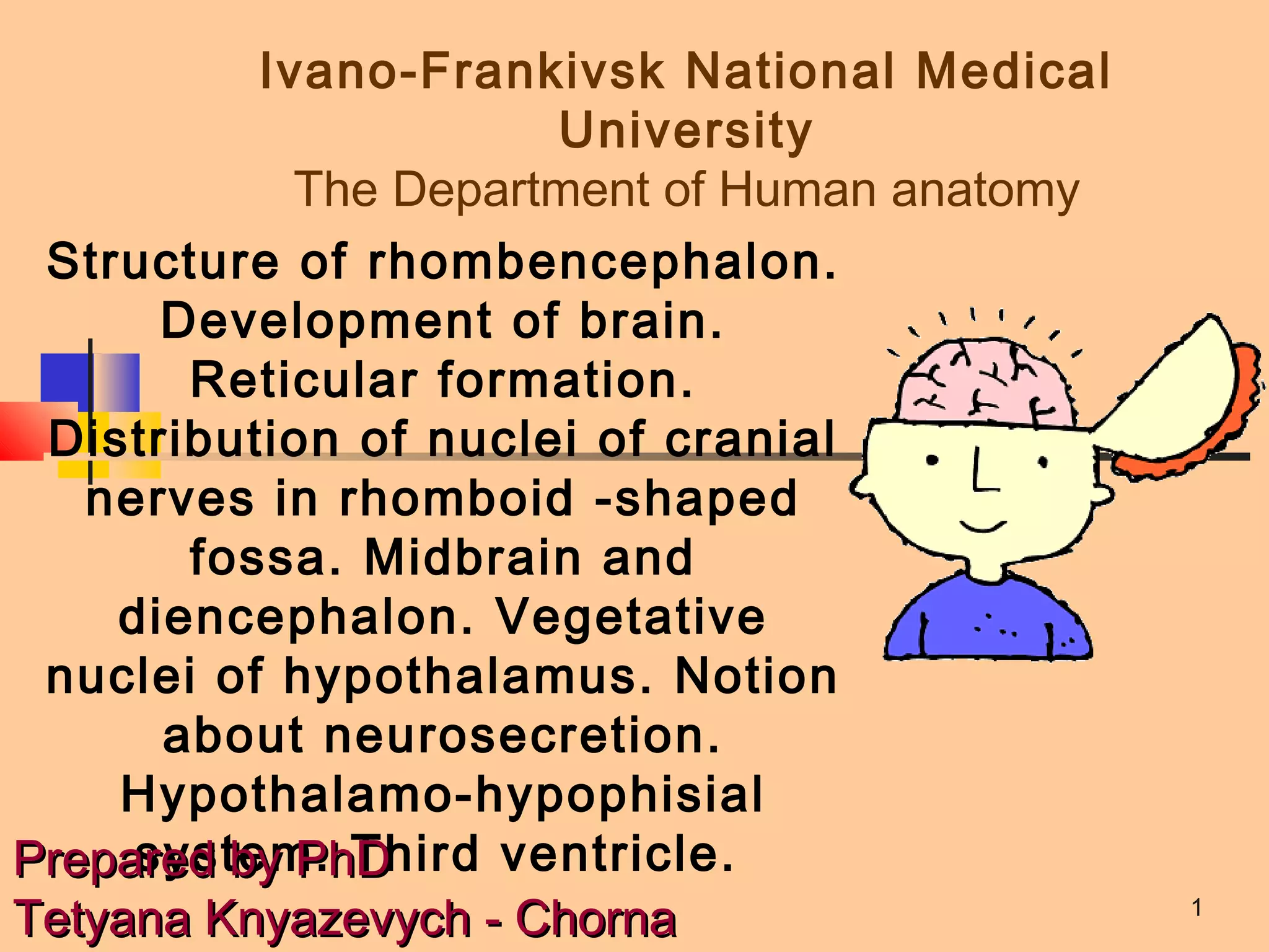The document discusses the development and structure of the brainstem, including the rhombencephalon, medulla oblongata, pons, cerebellum, midbrain, and reticular formation. It describes the formation of the primary brain vesicles and their development into the five secondary vesicles. It provides details on the internal structure, functions, and nuclei of cranial nerves contained within each region of the brainstem.