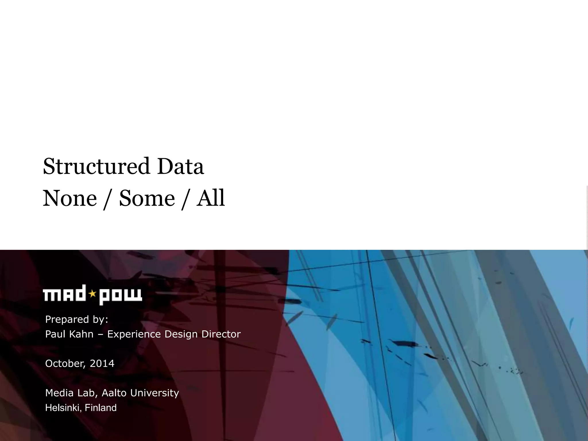 The document discusses structured data and metadata. It notes that as more metadata is added to content, the data becomes more structured, ranging from unstructured (no metadata) to semi-structured (some user-added metadata like tags) to structured (explicitly defined metadata standards are followed). When data is highly structured with a variety of metadata fields completed according to standards, it enables many types of relationships to be discovered and supports more precise searching.