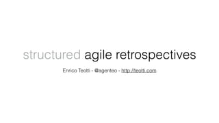 The document outlines a structured approach to agile retrospectives, detailing a 60-minute session that includes data gathering, insight generation, and decision-making. It emphasizes Kerth's prime directive, promoting a non-judgmental atmosphere where team members are acknowledged for their efforts and contributions. Additionally, it categorizes participant engagement levels and experiments aimed at improving team integration.