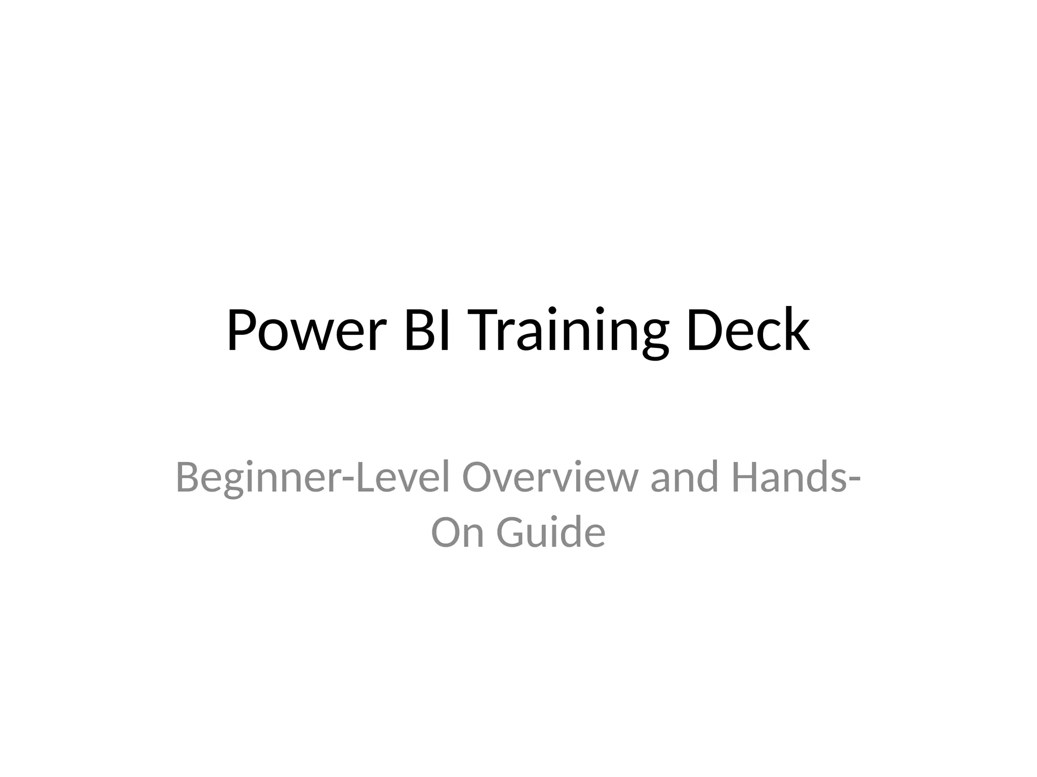 tructured training deck for beginners that covers the essentials of Power BI, including data loading, modeling, DAX basics, and visualization best practices.