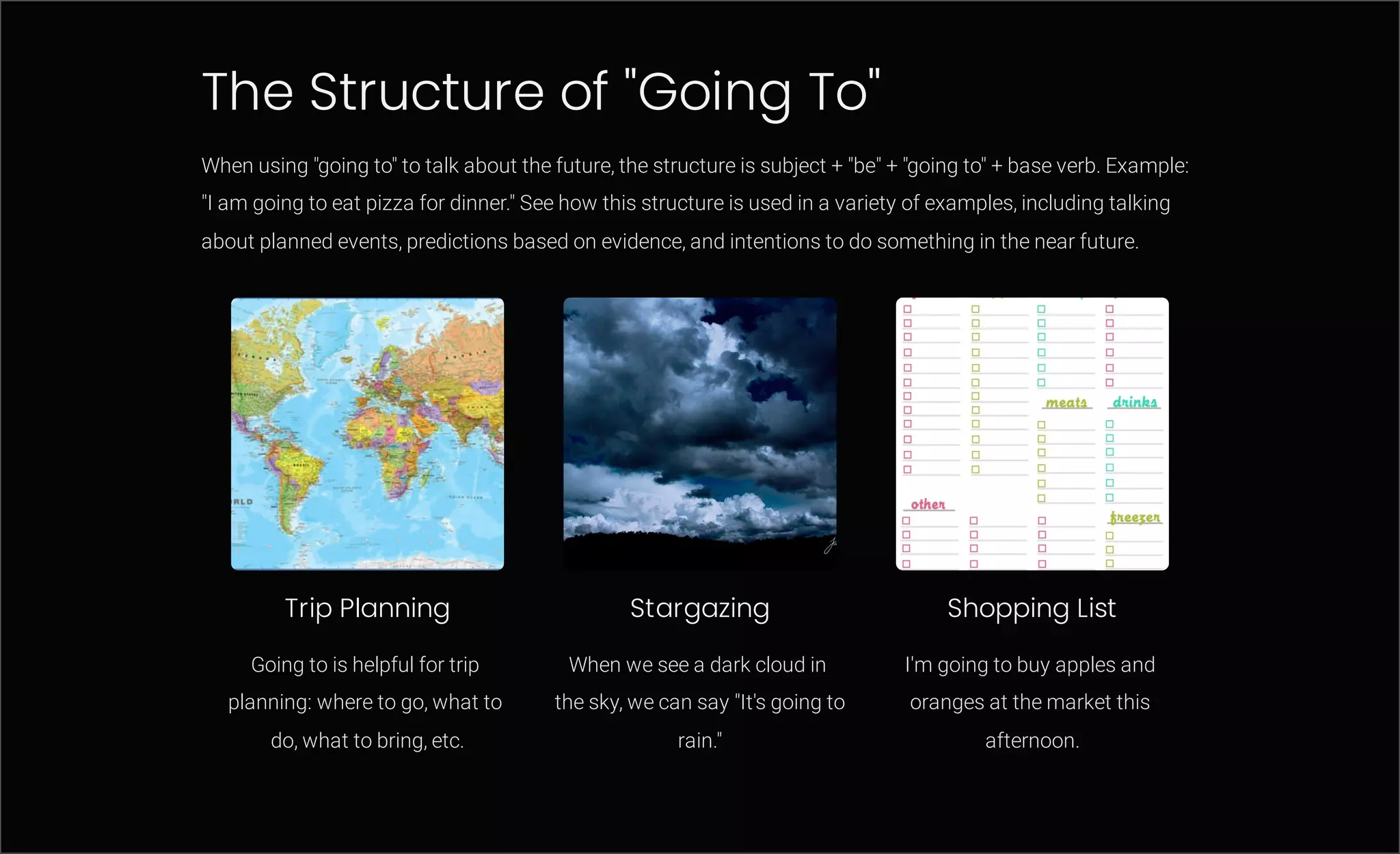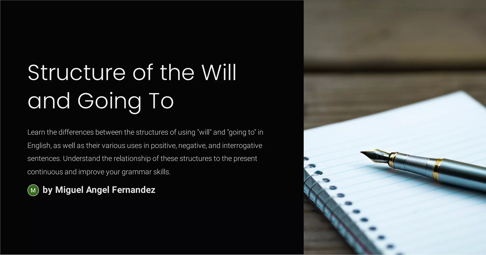 This document discusses the structures and uses of "will" and "going to" when talking about the future in English. It explains that "will" has the structure of subject + "will" + base verb, while "going to" uses subject + "be" + "going to" + base verb. It provides examples of how each can be used to make predictions, plans, promises, and more. The document also discusses the relationship between these structures and the present continuous tense, and how to use them in positive, negative, and interrogative sentences.