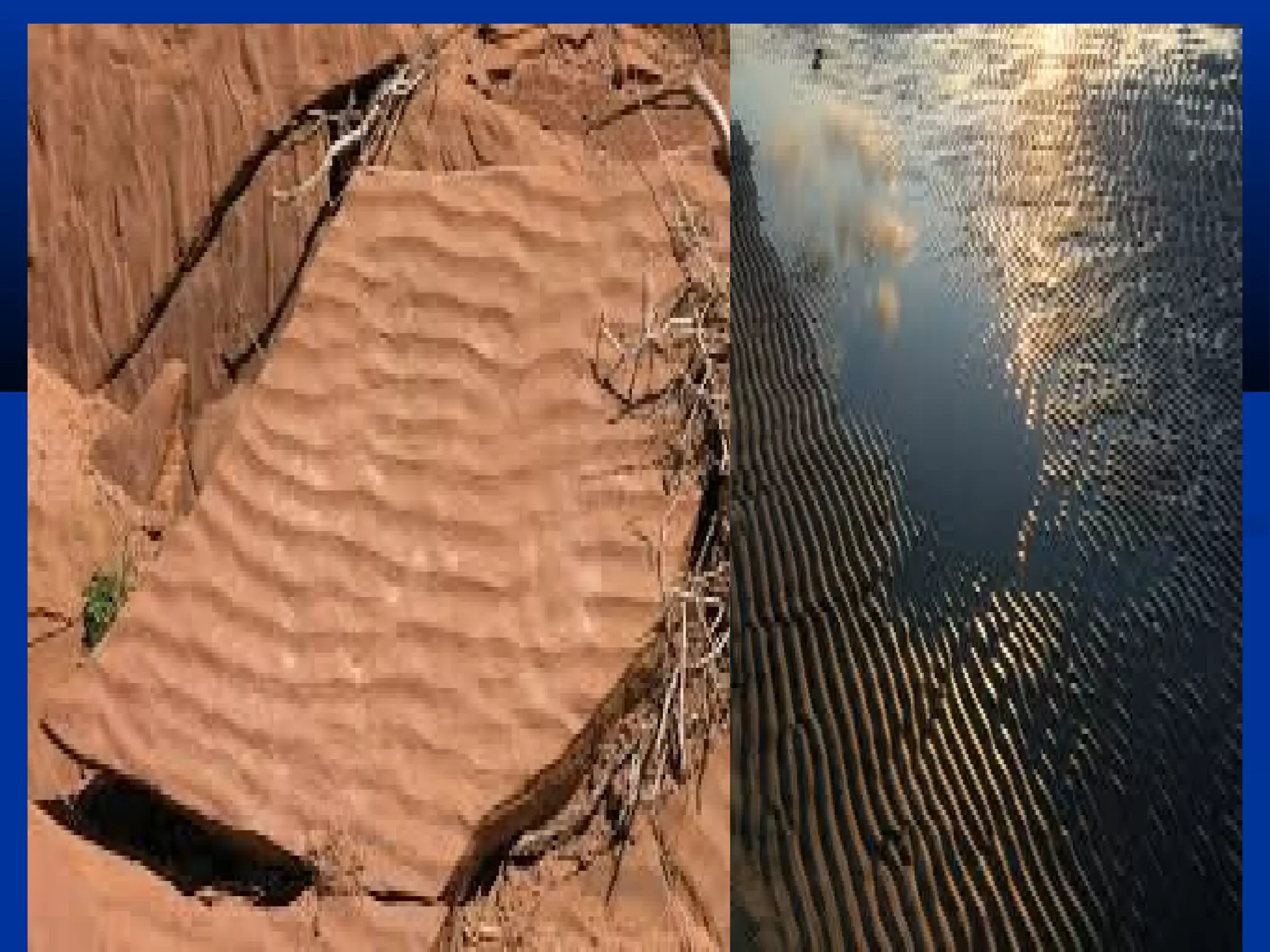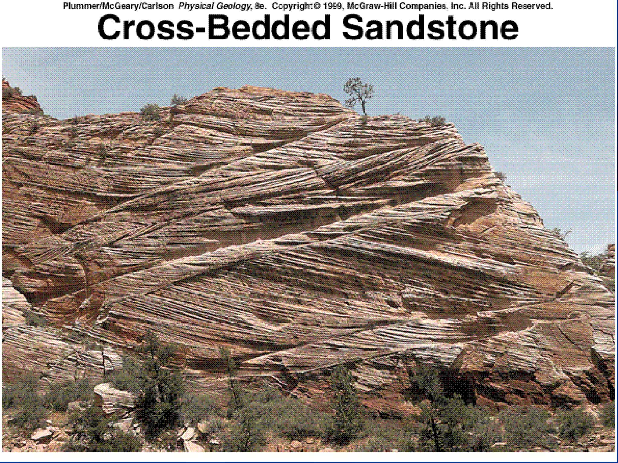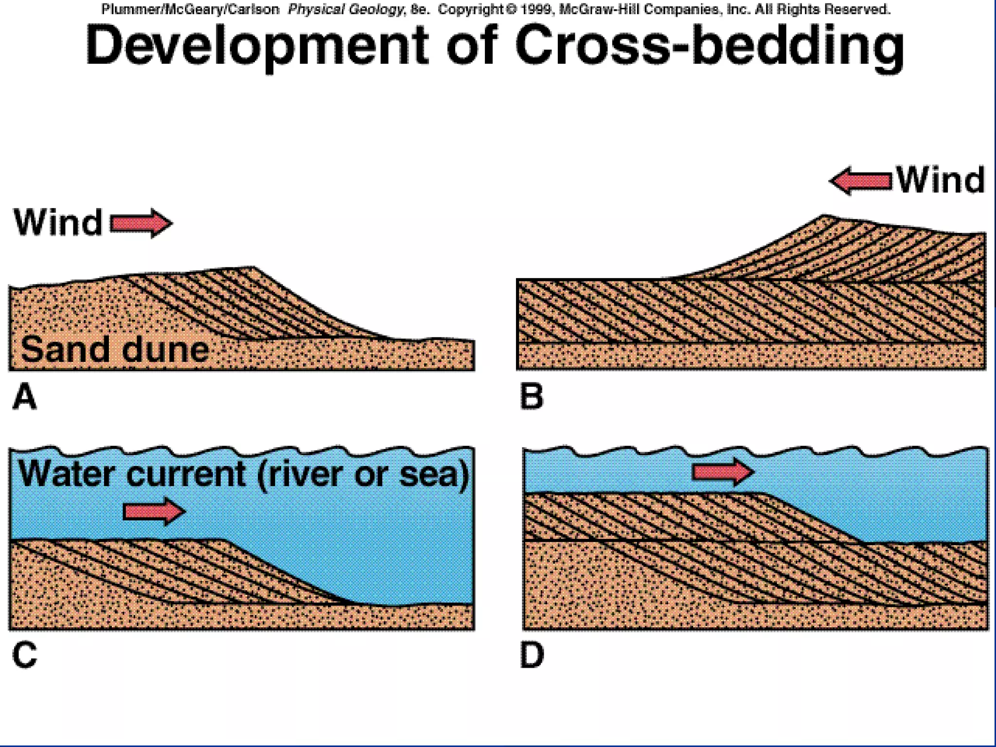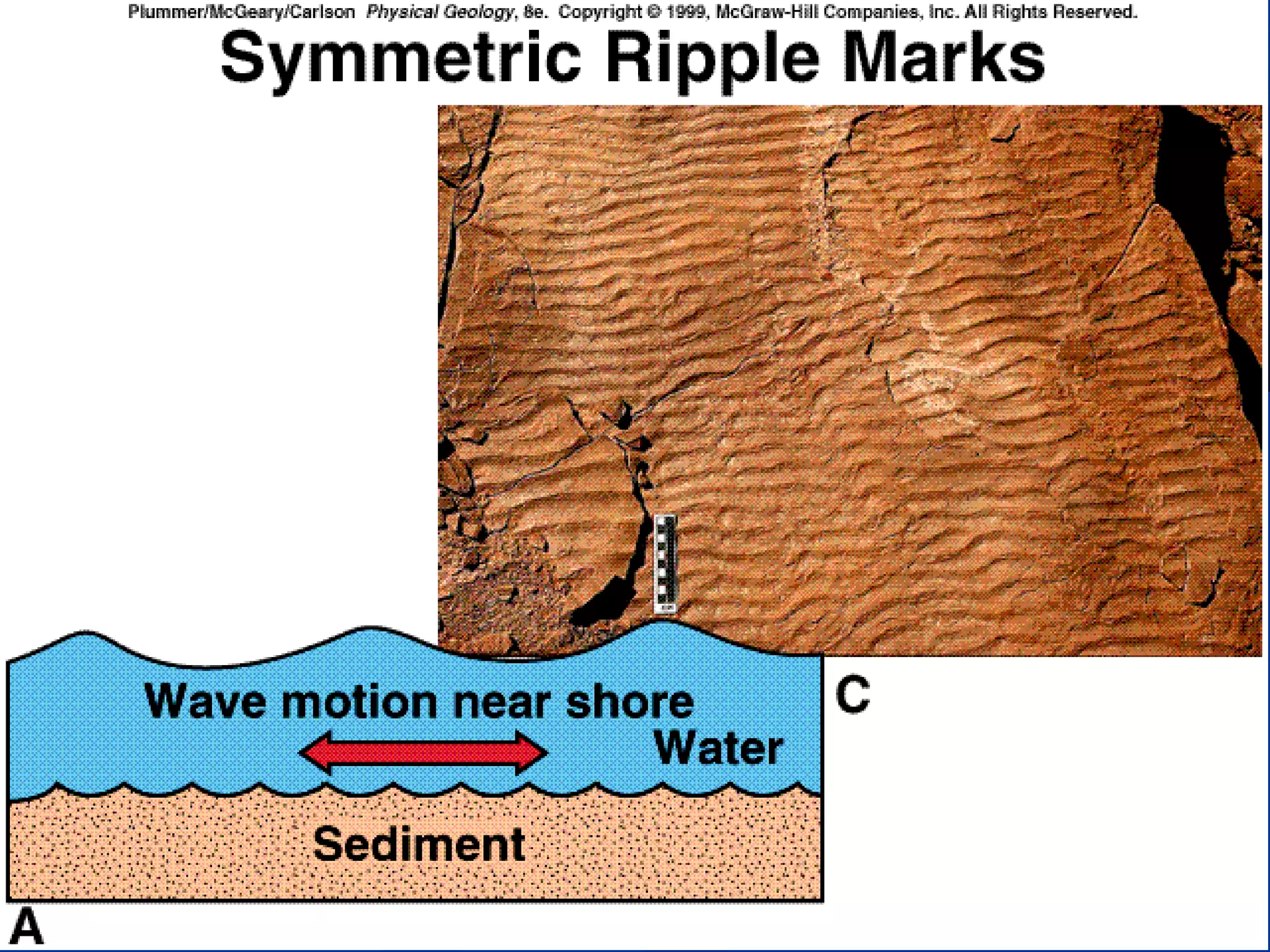 Sedimentary rocks form through the deposition of sediments or fragments by processes like erosion, transportation, and deposition. Sedimentary structures are classified based on how the sediments were deposited and include stratification, graded bedding, cross-bedding, ripple marks, mud cracks, rain drop marks, casts and molds, tool marks, tracks and trails, and burrow marks. Sedimentary rocks also include chemical rocks like limestone and dolomite formed from mineral precipitation, and biochemical rocks like coal and fossil-bearing limestone formed from organic materials.