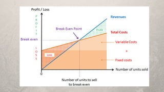 Il documento tratta degli strumenti di controllo e dei key performance indicators (KPI) utilizzati nella gestione aziendale per valutare e migliorare le performance. Viene evidenziata l'importanza del cruscotto per analizzare le risorse necessarie e dei vari KPI per monitorare l'andamento economico e la catena degli acquisti. Inoltre, viene spiegato il concetto di break even point, fondamentale per capire il punto di pareggio tra costi e ricavi.