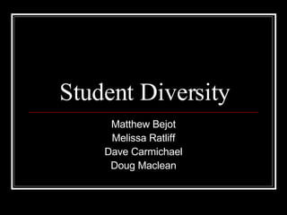 The document discusses various aspects of student diversity, including racial, cultural, ethnic, and English as a second language (ESL) diversity. It notes both benefits and challenges of diversity, such as new immigrants reviving local economies but also new conflicts arising. It emphasizes that diversity need not be a problem if schools and communities respond appropriately. It also discusses how teaching about diversity can help develop student understanding and decrease negative feelings toward other groups.
