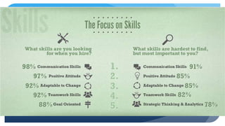 The document outlines strategies for effectively applying leadership skills in career pursuits, including resume building, interviewing techniques, and the distinction between leaders and managers. It highlights the importance of showcasing accomplishments with quantifiable results and preparing for common interview questions related to leadership experiences. Additionally, it provides resources for further career development, such as networking through LinkedIn and accessing career services.